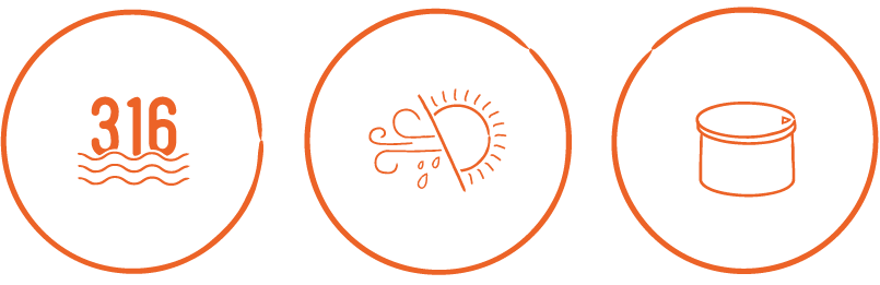 With an exterior surface finished in 316 marine grade stainless steel and an all interior stainless steel surface designed in commercial 304 grade.